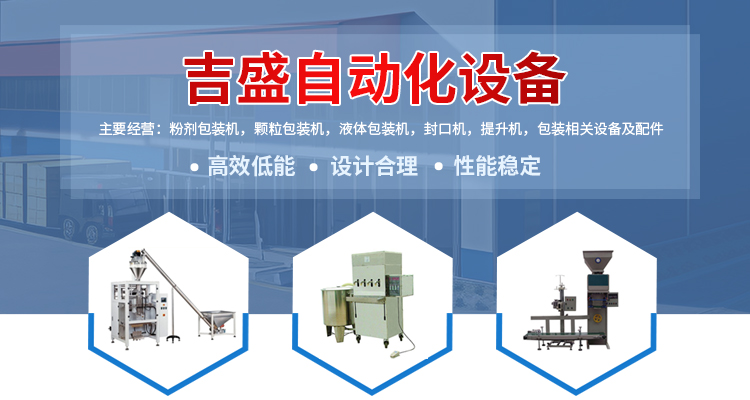 鄭州吉盛自動化設(shè)備有限公司主要經(jīng)營:粉劑包裝機(jī),顆粒包裝機(jī),液體包裝機(jī),封口機(jī),提升機(jī),包裝相關(guān)設(shè)備及配件。